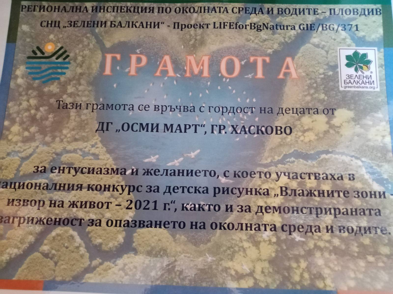 27 деца получиха висока оценка за рисунките, любовта и загрижеността си към природата 8 апр 2021 . Прикачени файлове грамота